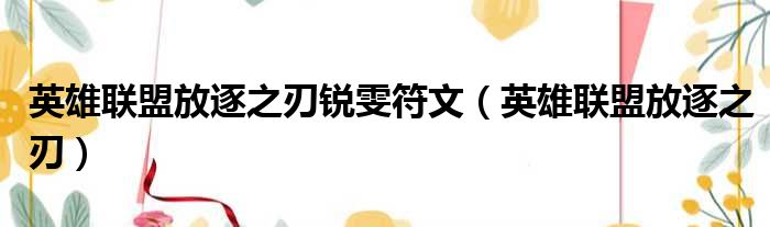 导读 大家好,今天小六子来为大家解答以下的问题,关于英雄联盟放逐之刃锐雯符文,英雄联盟放逐之刃这个很多人还不知道,现在让我们一起来看看吧