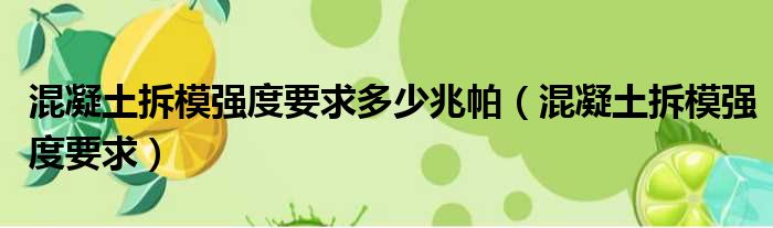 混凝土拆模强度要求多少兆帕(混凝土拆模强度要求)