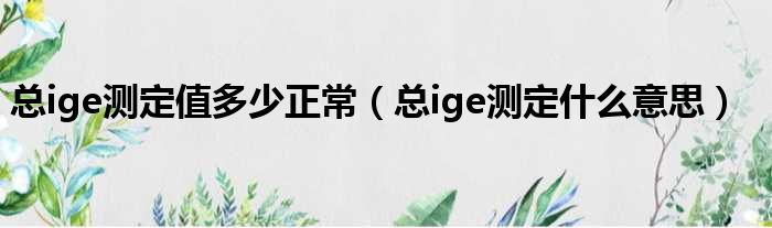 导读 大家好,linda来为大家解答以上的问题。总ige测定值多少正常,总ige测定什么意思很多人还不知道,现在让我们一起来看看吧!1、总ige测量是