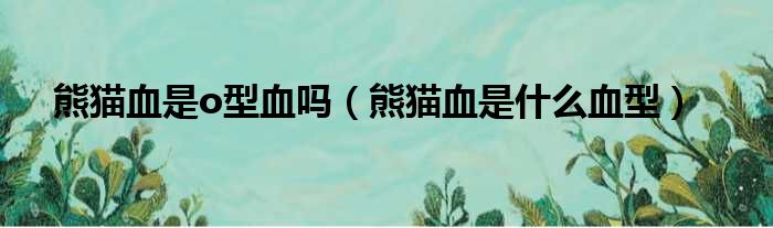 导读 大家好,linda来为大家解答以上的问题。熊猫血是o型血吗,熊猫血是什么血型很多人还不知道,现在让我们一起来看看吧!1、熊猫血是指Rh阴性