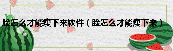 脸怎么才能瘦下来软件(脸怎么才能瘦下来)