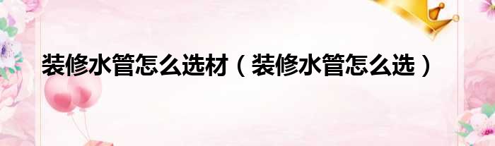 装修水管怎么选材(装修水管怎么选)