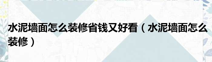水泥墙面怎么装修省钱又好看(水泥墙面怎么装修)
