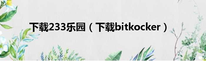 大家好,今天小六子来为大家解答以下的问题,关于下载233乐园,下载bitkocker这个很多人还不知道,现在让我们一起来看看吧!