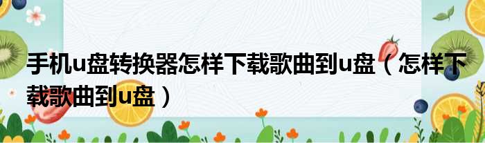 手机u盘转换器怎样下载歌曲到u盘(怎样下载歌曲到u盘)