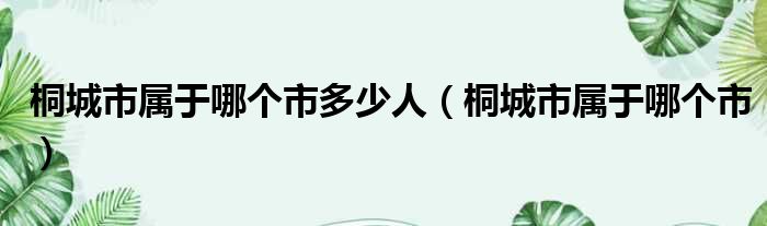 桐城市属于哪个市多少人(桐城市属于哪个市)