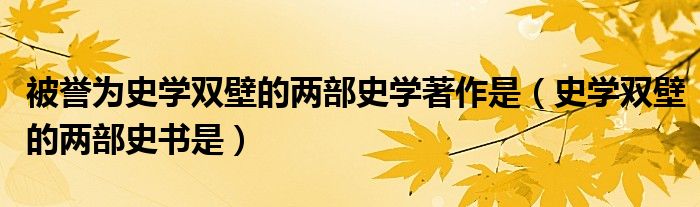 被誉为史学双壁的两部史学著作是(史学双壁的两部史书是)