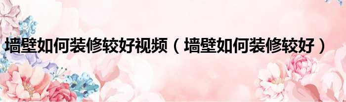 墙壁如何装修较好视频(墙壁如何装修较好)