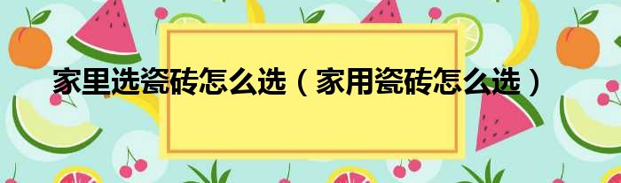 家里选瓷砖怎么选(家用瓷砖怎么选)