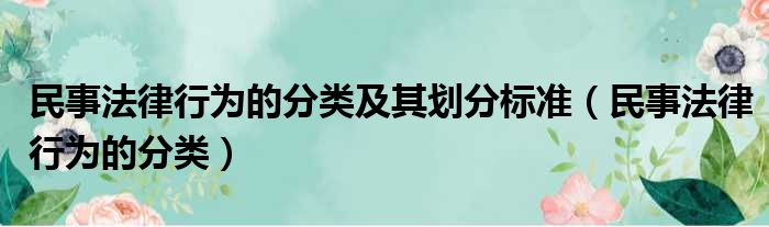 民事法律行为的分类及其划分标准(民事法律行为的分类)