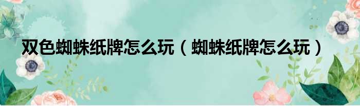 双色蜘蛛纸牌怎么玩(蜘蛛纸牌怎么玩)