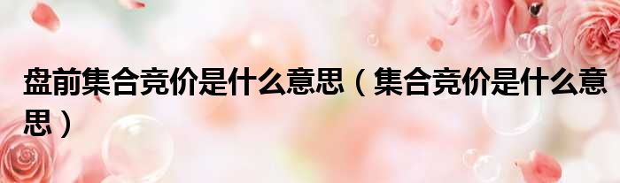 盘前集合竞价是什么意思(集合竞价是什么意思)