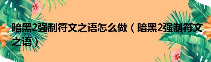 暗黑2强制符文之语怎么做(暗黑2强制符文之语)