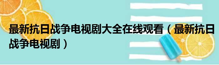 最新抗日战争电视剧大全在线观看(最新抗日战争电视剧)