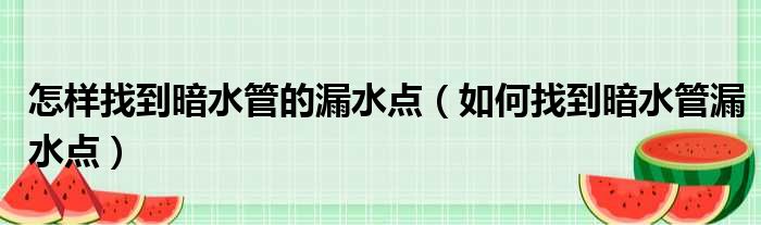 怎样找到暗水管的漏水点(如何找到暗水管漏水点)