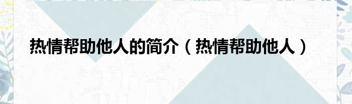 大家好,今天小六子来为大家解答以下的问题,关于热情帮助他人的简介,热情帮助他人这个很多人还不知道,现在让我们一起来看看吧!