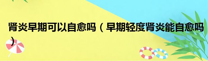 肾炎早期可以自愈吗(早期轻度肾炎能自愈吗)