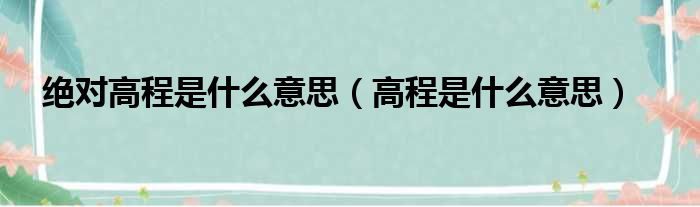 导读 大家好,今天小六子来为大家解答以下的问题,关于绝对高程是什么意思,高程是什么意思这个很多人还不知道,现在让我们一起来看看吧!1、高程