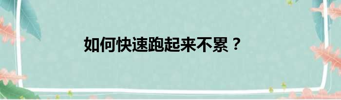 大家好,今天小六子来为大家解答以下的问题,关于如何快速跑起来不累?这个很多人还不知道,现在让我们一起来看看吧!