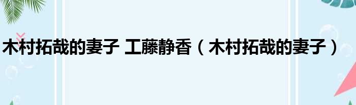 大家好,今天小六子来为大家解答以下的问题,关于木村拓哉的妻子 工藤静香,木村拓哉的妻子这个很多人还不知道,现在让我们一起来看看吧!