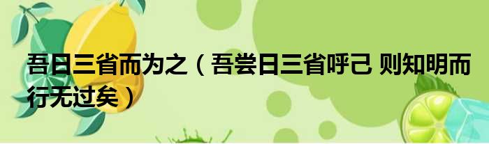 导读 大家好,今天小六子来为大家解答以下的问题,关于吾日三省而为之,吾尝日三省呼己 则知明而行无过矣这个很多人还不知道,现在让我们一起来