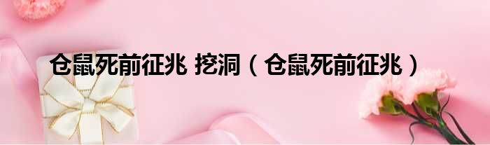 导读 大家好,今天小六子来为大家解答以下的问题,关于仓鼠死前征兆 挖洞,仓鼠死前征兆这个很多人还不知道,现在让我们一起来看看吧!1、鼠鼠死