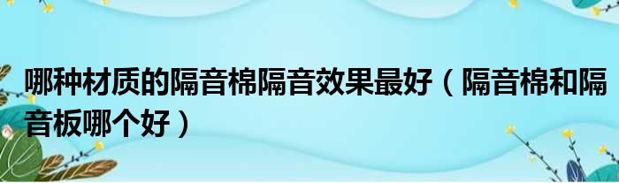 哪种材质的隔音棉隔音效果最好(隔音棉和隔音板哪个好)
