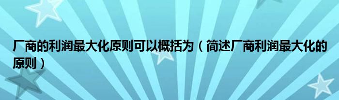 大家好,今天小六子来为大家解答以下的问题,关于厂商的利润最大化原则可以概括为,简述厂商利润最大化的原则这个很多人还不知道,现在让我们一起来看看吧!