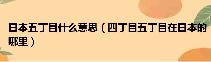 日本五丁目什么意思(四丁目五丁目在日本的哪里)