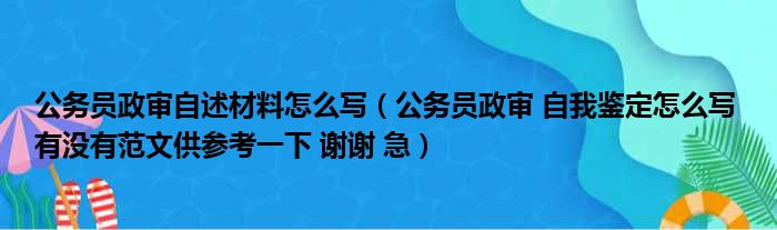 公务员政审自述材料怎么写(公务员政审 自我鉴定怎么写 有没有范文供参考一下 谢谢 急)