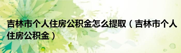 吉林市个人住房公积金怎么提取(吉林市个人住房公积金)