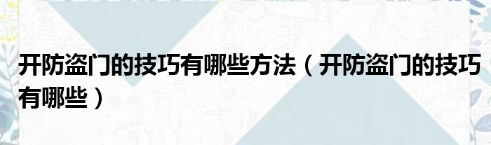 开防盗门的技巧有哪些方法(开防盗门的技巧有哪些)