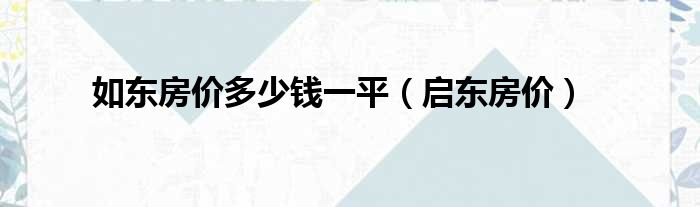大家好,今天小六子来为大家解答以下的问题,关于如东房价多少钱一平,启东房价这个很多人还不知道,现在让我们一起来看看吧!