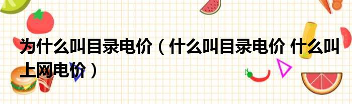 为什么叫目录电价(什么叫目录电价 什么叫上网电价)