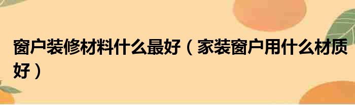 窗户装修材料什么最好(家装窗户用什么材质好)