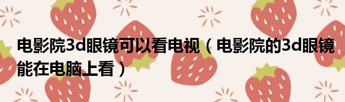 电影院3d眼镜可以看电视(电影院的3d眼镜能在电脑上看)