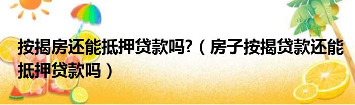 按揭房还能抵押贷款吗?(房子按揭贷款还能抵押贷款吗)