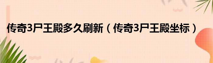 传奇3尸王殿多久刷新(传奇3尸王殿坐标)