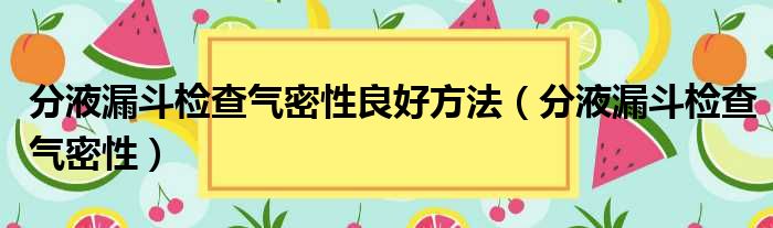 分液漏斗检查气密性良好方法(分液漏斗检查气密性)