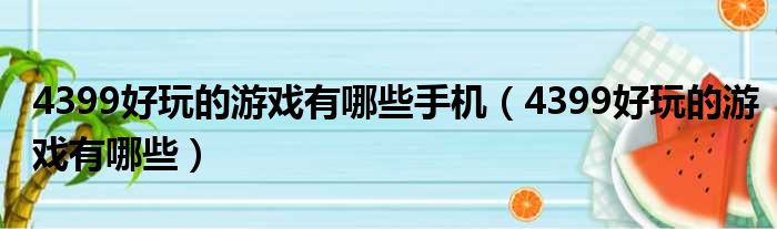 4399好玩的游戏有哪些手机(4399好玩的游戏有哪些)