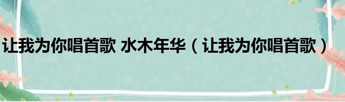 大家好,今天小六子来为大家解答以下的问题,关于让我为你唱首歌 水木年华,让我为你唱首歌这个很多人还不知道,现在让我们一起来看看吧!