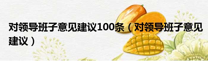 大家好,今天小六子来为大家解答以下的问题,关于对领导班子意见建议100条,对领导班子意见建议这个很多人还不知道,现在让我们一起来看看吧!