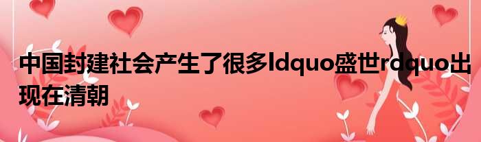 大家好,今天小六子来为大家解答以下的问题,关于中国封建社会产生了很多ldquo盛世rdquo出现在清朝这个很多人还不知道,现在让我们一起来看看吧!