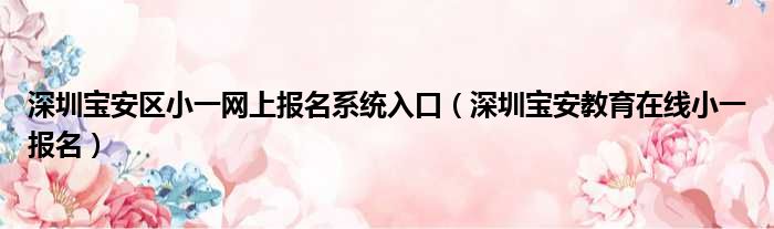 深圳宝安区小一网上报名系统入口(深圳宝安教育在线小一报名)