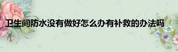 卫生间防水没做好的补救方法有:一、找准漏水点,逐一排查是墙面问题,地面防水问题还是水管问题;二、针对性处理,重新做漏水渗水部位的防水或者更换破裂的水管;三、细节处理,地面和墙面的衔接处要做好防水,下水口处要做好密封处理。