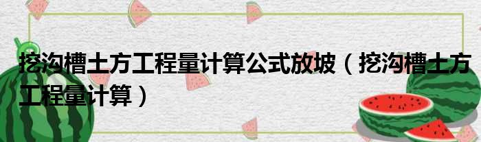 挖沟槽土方工程量计算公式放坡(挖沟槽土方工程量计算)