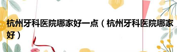 杭州牙科医院哪家好一点(杭州牙科医院哪家好)