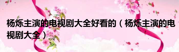 导读 大家好,今天小六子来为大家解答以下的问题,关于杨烁主演的电视剧大全好看的,杨烁主演的电视剧大全这个很多人还不知道,现在让我们一起来
