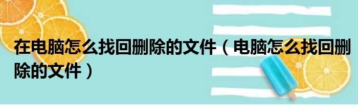 在电脑怎么找回删除的文件(电脑怎么找回删除的文件)