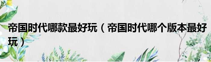 导读 大家好,今天小六子来为大家解答以下的问题,关于帝国时代哪款最好玩,帝国时代哪个版本最好玩这个很多人还不知道,现在让我们一起来看看吧